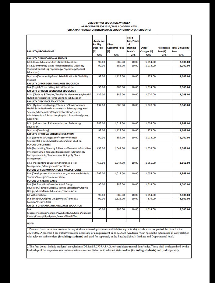 الصفحة الرئيسيةCampus Bitz UEW: Approved Reduced Fees For 2022/23 Academic Year Era D'Blogger يناير 04, 2023 0 The University of Education Winneba has released the approved Fees For the 2022/23 Academic year. It was released on their Official website Below are the fees